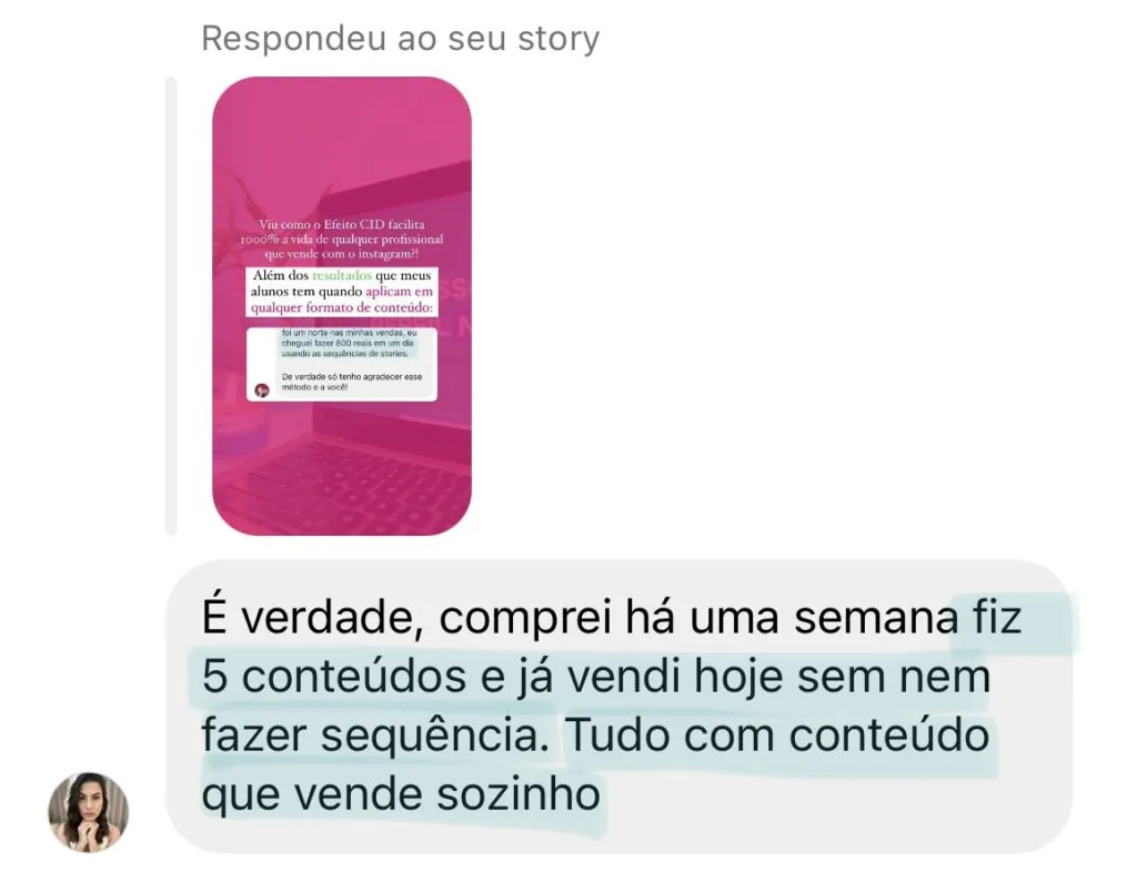 Depois, terá acesso ao passo a passo para ativar o Efeito CID nos seus conteúdos, e assim, chamar a atenção, manter o público interessado e despertar o desejo natural de te seguirem e comprarem de você.