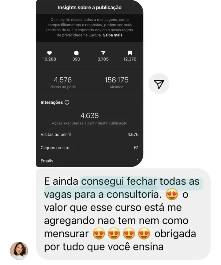 Com o tempo, acompanhei as mudanças do digital, testei diferentes formatos e estratégias e também construí meu perfil atual, que já passou de 80 mil seguidores e gerou mais de 1 milhão em vendas.