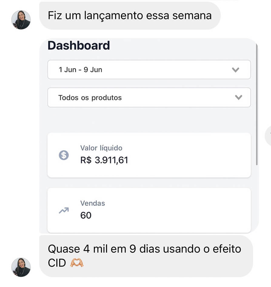 Essa aluna gerou + de R$4.000 na SEMANA enquanto ainda estava na fase de implementação de um dos funis CID.