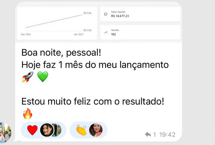 E essa aluna, mais de R$14.000 no primeiro mês de vendas do seu novo produto com o seu conteúdo.