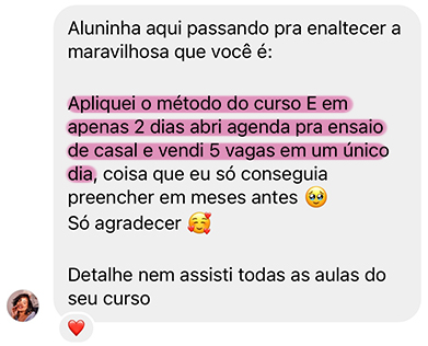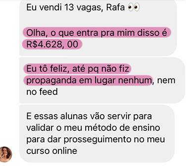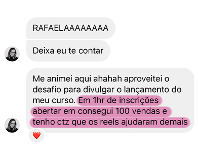Temos alunos com 200 seguidores, 500 seguidores, 1.000 seguidores que conseguem produzir conteúdos que geram vendas diárias.