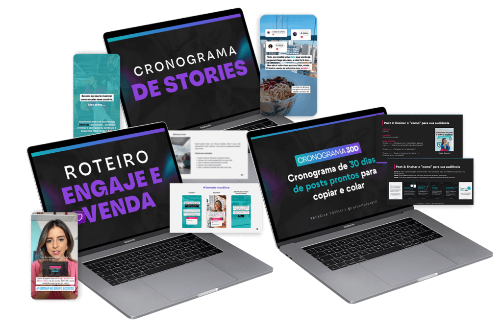 Com ele você poderá copiar e colar cada uma das estruturas e conteúdos prontos apresentados e saber exatamente o que, como e quando postar o mês inteiro para gerar vendas DIÁRIAS (e, claro, sem ser a vendedora chata).